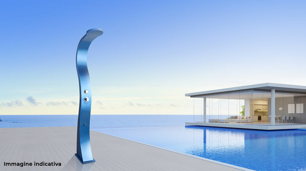 Le curve di questa doccia sono una delizia per gli appassionati di design. La sua struttura in alluminio e la sua finitura leggermente scintillante sono uno specchio perfetto per i riflessi del sole. Le sue doppie forniture d'acqua offrono una doccia calda indipendentemente dalla stagione. Il suo miscelatore in acciaio inossidabile offre all'utente una selezione precisa della temperatura, mentre il suo inverter consente di scegliere tra la doccia a pioggia integrata o il risciacquo del piede per un utilizzo facile e conveniente.