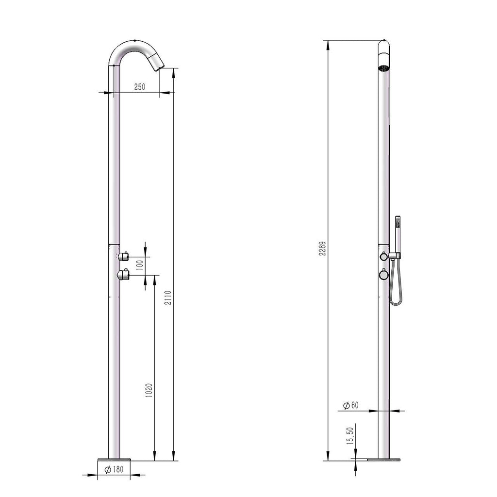 Doccia da Giardino 228,9x18x25 cm con Miscelatore e Doccetta Sined Alghero Inox