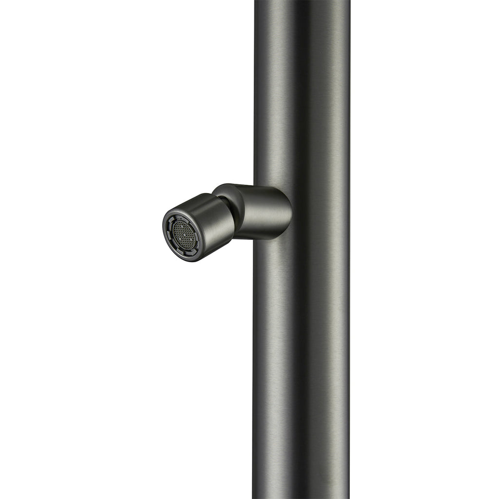 Elegante doccia esterna per giardino di alta qualita colore canna di fucile, la doccia inox è stata pensata e realizzata per qualsiasi installazione all'aperto. La doccia con lavapiedi modello QUARTU è una doccia in Acciaio Aisi Inox 316L con ingresso acqua calda e fredda. La doccia per esterno è ottima per uso commerciale, privato, per piscina esterna-interna, giardino o per il bagno di casa. Altezza 2289 mm. diametro 60 mm.