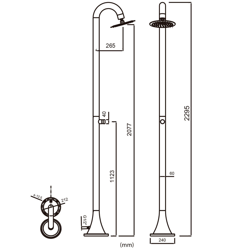 Scopri la nuova doccia in acciaio inox nautico Luna di colore nero, la soluzione ideale per il comfort all’aperto. Perfetta per giardini, aree piscina e spazi esterni, questa doccia offre un getto di acqua fredda rinfrescante, perfetto per ricaricarsi durante le giornate calde. Realizzata in acciaio inox di alta qualità, è resistente alla corrosione e agli agenti atmosferici, garantendo durata e affidabilità nel tempo. Il suo design italiano senza tempo unisce eleganza e stile, aggiungendo un tocco di classe al tuo spazio outdoor. La finitura nera moderna e raffinata rende questa doccia un elemento di design funzionale e di grande impatto estetico. Scegli la robustezza, l’eleganza e la praticità di questa doccia in acciaio inox nautico Luna per valorizzare il tuo spazio esterno con stile e durabilità.