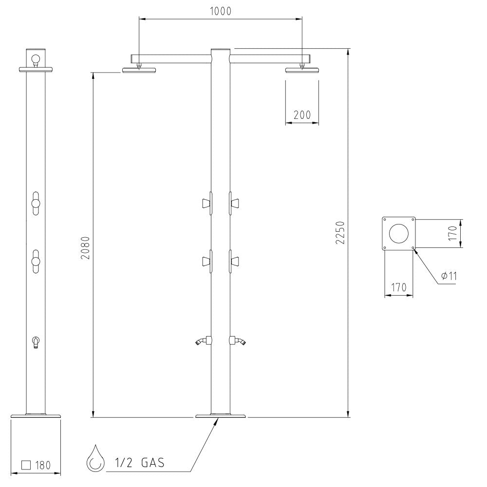 Caratteristiche Tecniche Doccia da Giardino Tradizionale 4 Rubinetti Temporizzati 2 Soffioni e Lavapiedi Ama Luxury Nettuno