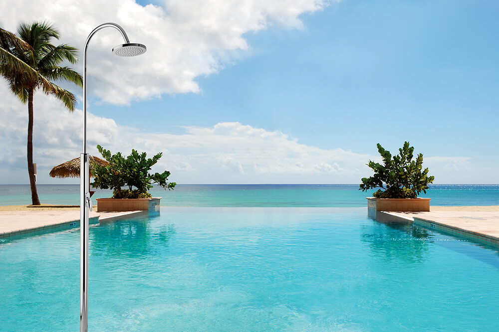 La colonna doccia tradizionale che è la perfetta fusione tra essenzialità e leggerezza in un design classico, si adatta perfettamente ad ogni contesto ed esigenza. Contraddistinta da geometrie minimali ke ne esaltano la linea e la rendono un raffinato complemento d'arredo esterno. Giove risulta essere la soluzione ideale per le strutture ricettive, per il tuo arredo giardino