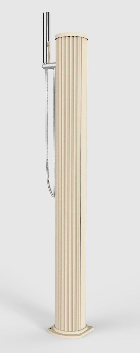 L'armonia e l'eleganza delle sue forme la rendono un complemento d'arredo adatto per qualsiasi ambientazione, sia solo per il giardino o se necessitate di una doccia per la vostra piscina. Ideale per strutture pubbliche e balneari.