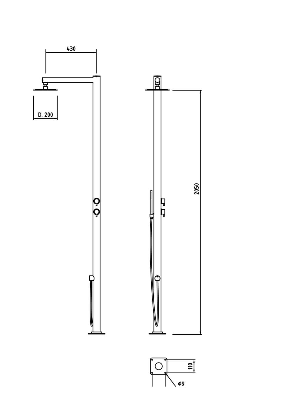Caratteristiche Tecniche Doccia da Giardino Tradizionale Miscelatore e Doccetta Ama Luxury Venere