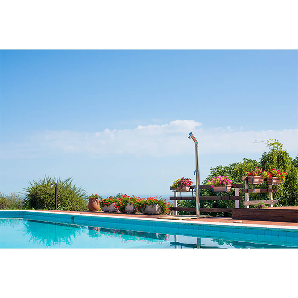 L'armonia e l'eleganza delle sue forme la rendono un complemento d'arredo adatto per qualsiasi ambientazione, sia solo per il giardino o se necessitate di una doccia per la vostra piscina. Ideale per strutture pubbliche e balneari.