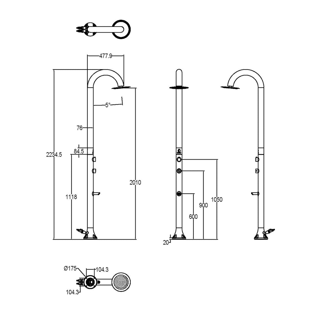 Doccia da Giardino Miscelatore e Lavapiedi 17,5x17,5xH223,5 cm Sined Luna Nera