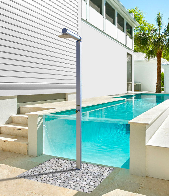 L'armonia e l'eleganza delle sue forme la rendono un complemento d'arredo adatto per qualsiasi ambientazione, sia solo per il giardino o se necessitate di una doccia per la vostra piscina. Ideale per strutture pubbliche e balneari.