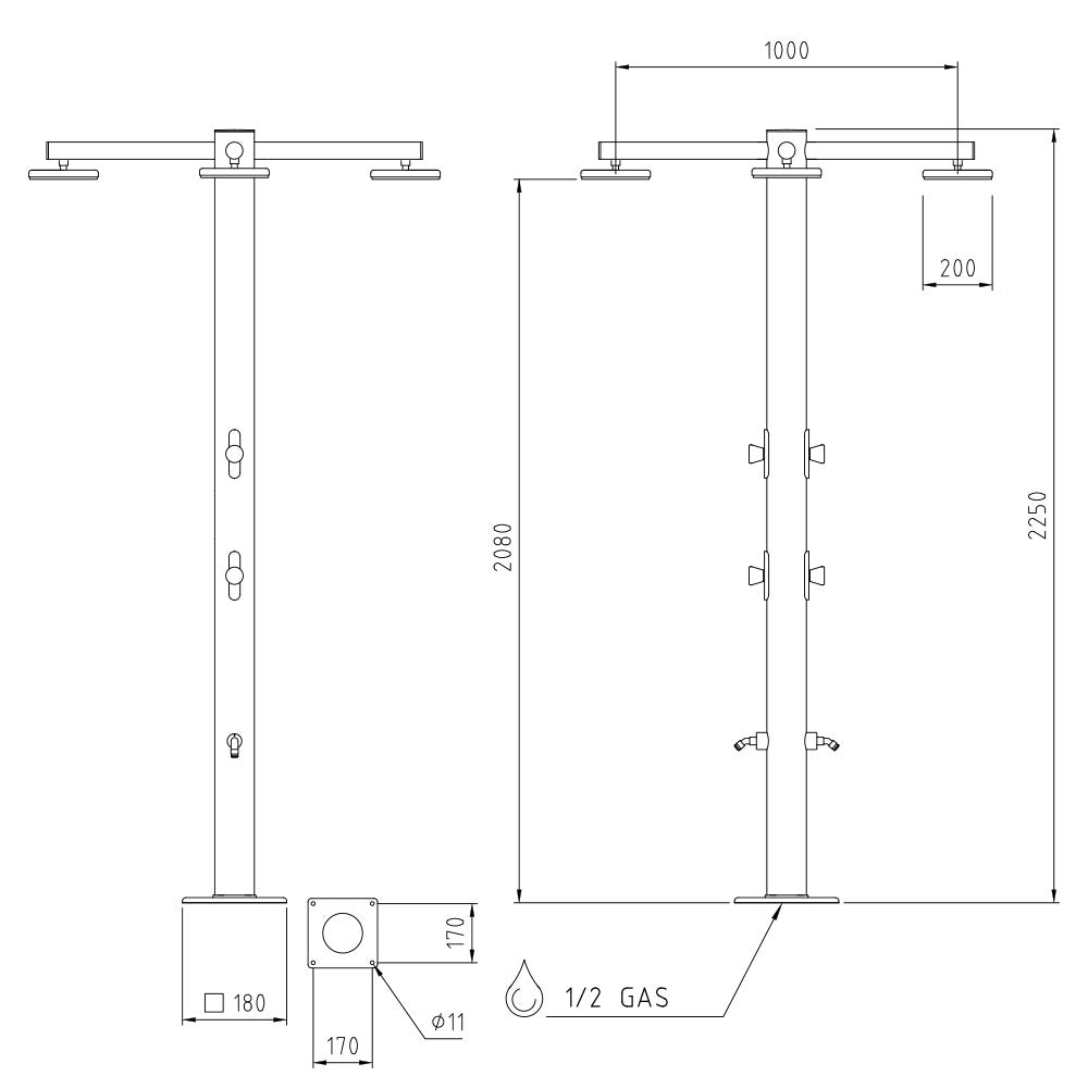 Caratteristiche Tecniche Doccia da Giardino Tradizionale 6 Rubinetti Temporizzati 4 Soffioni e Lavapiedi Ama Luxury Nettuno
