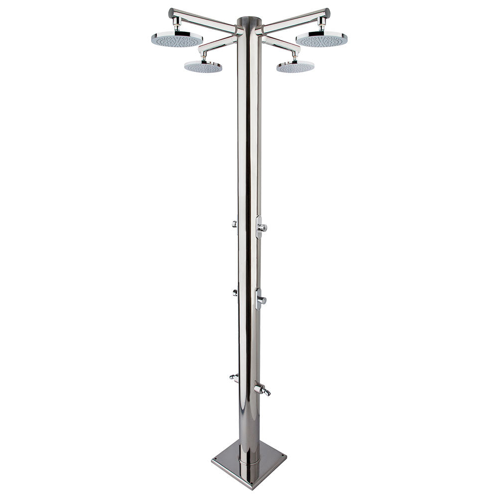 Doccia da Giardino Quadrupla Con 6 Rubinetti Temporizzati 4 Soffioni e Lavapiedi in Acciaio Ama Luxury Nettuno
