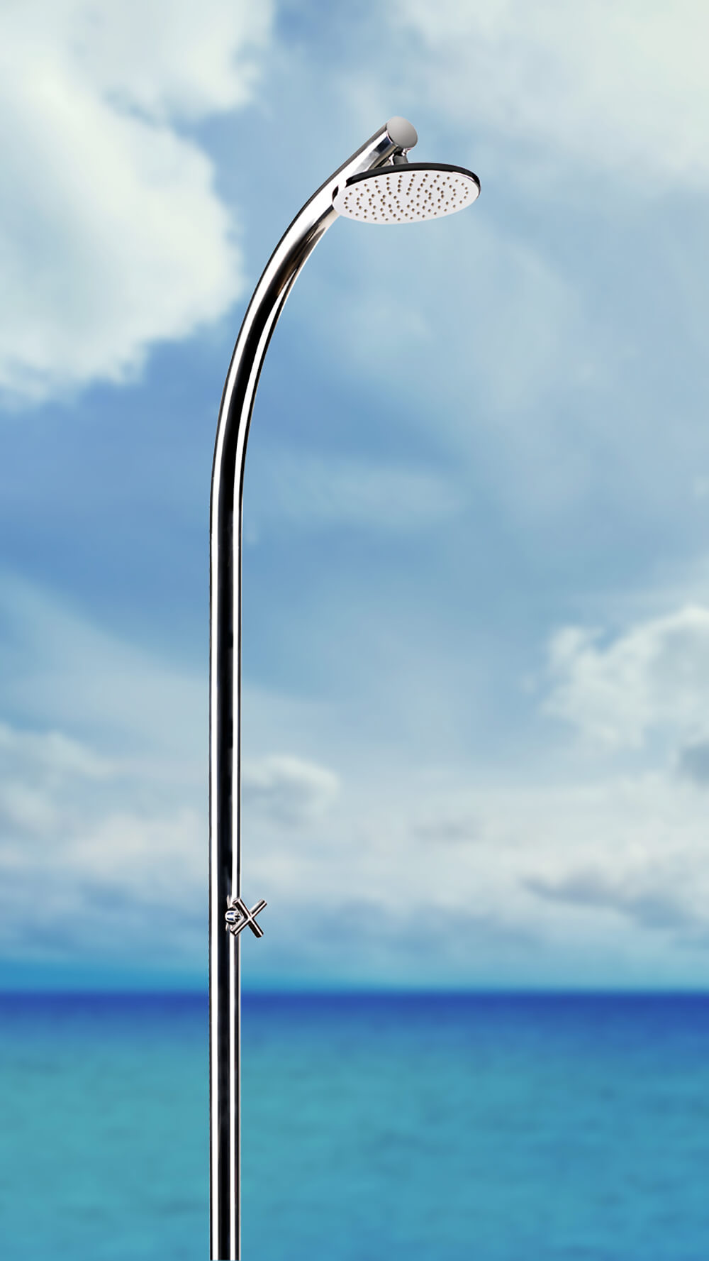 La colonna doccia tradizionale offre un design raffinato nelle sue curve, La sezione tonda della colonna, la curvatura alta e appena accennata, trasmettono straordinaria delicatezza. Contraddistinta da linee minimali che la rendono un raffinato complemento d'arredo esterno. Hera risulta essere la soluzione ideale per il settore nautico, per le strutture ricettive e per il tuo arredo giardino