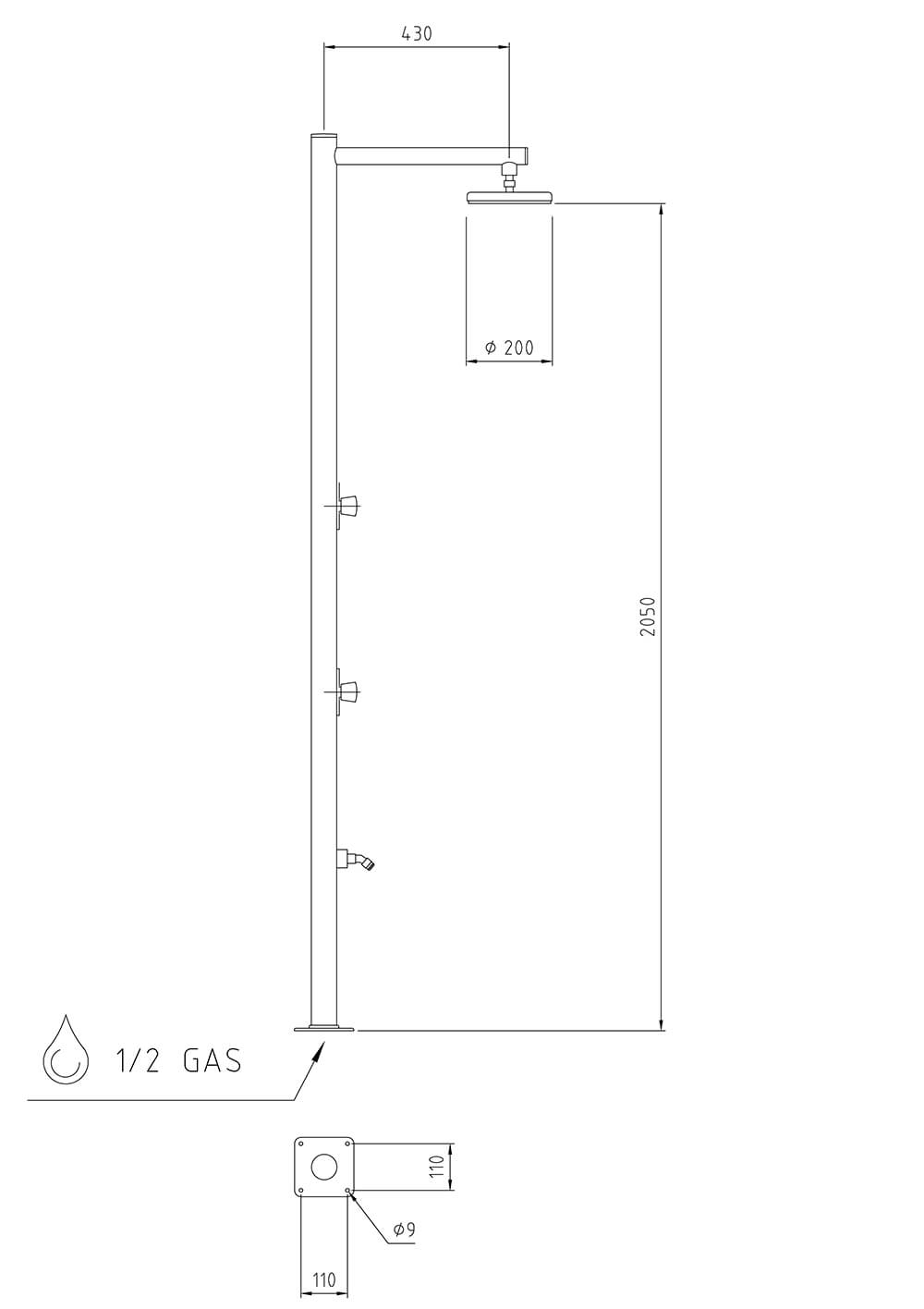 - Altezza soffione: 205 cm
