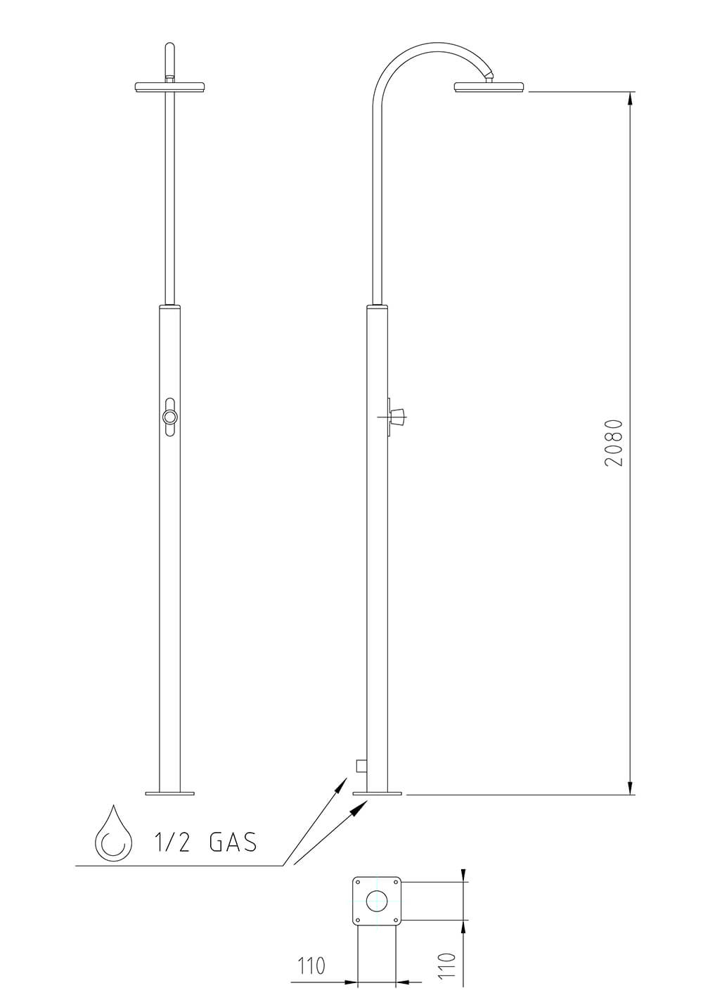 La colonna doccia tradizionale che è la perfetta fusione tra essenzialità e leggerezza in un design classico, si adatta perfettamente ad ogni contesto ed esigenza. Contraddistinta da geometrie minimali ke ne esaltano la linea e la rendono un raffinato complemento d'arredo esterno. Giove risulta essere la soluzione ideale per le strutture ricettive, per il tuo arredo giardino