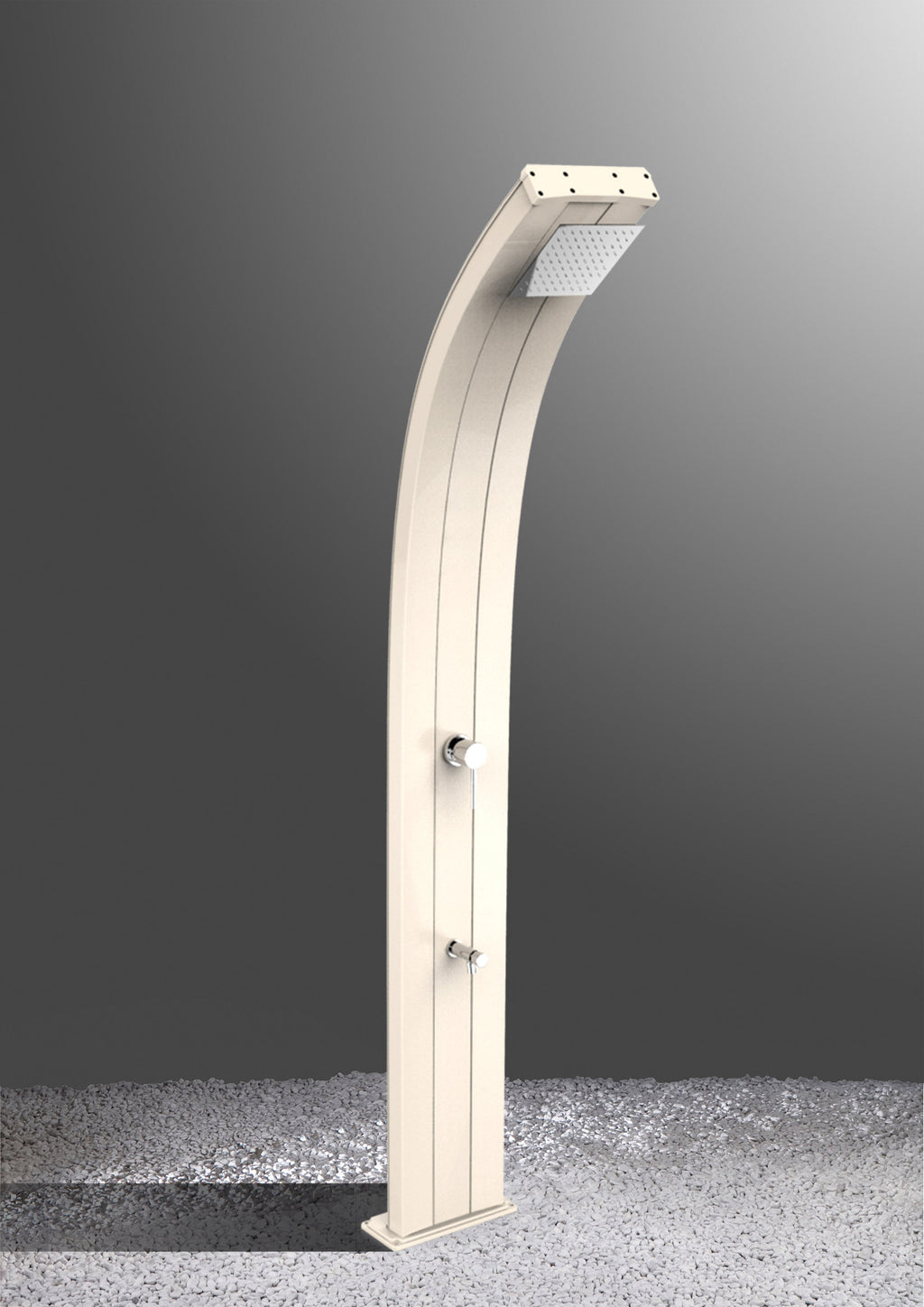 L'armonia e l'eleganza delle sue forme la rendono un complemento d'arredo adatto per qualsiasi ambientazione, sia solo per il giardino o se necessitate di una doccia per la vostra piscina. Ideale per strutture pubbliche e balneari.