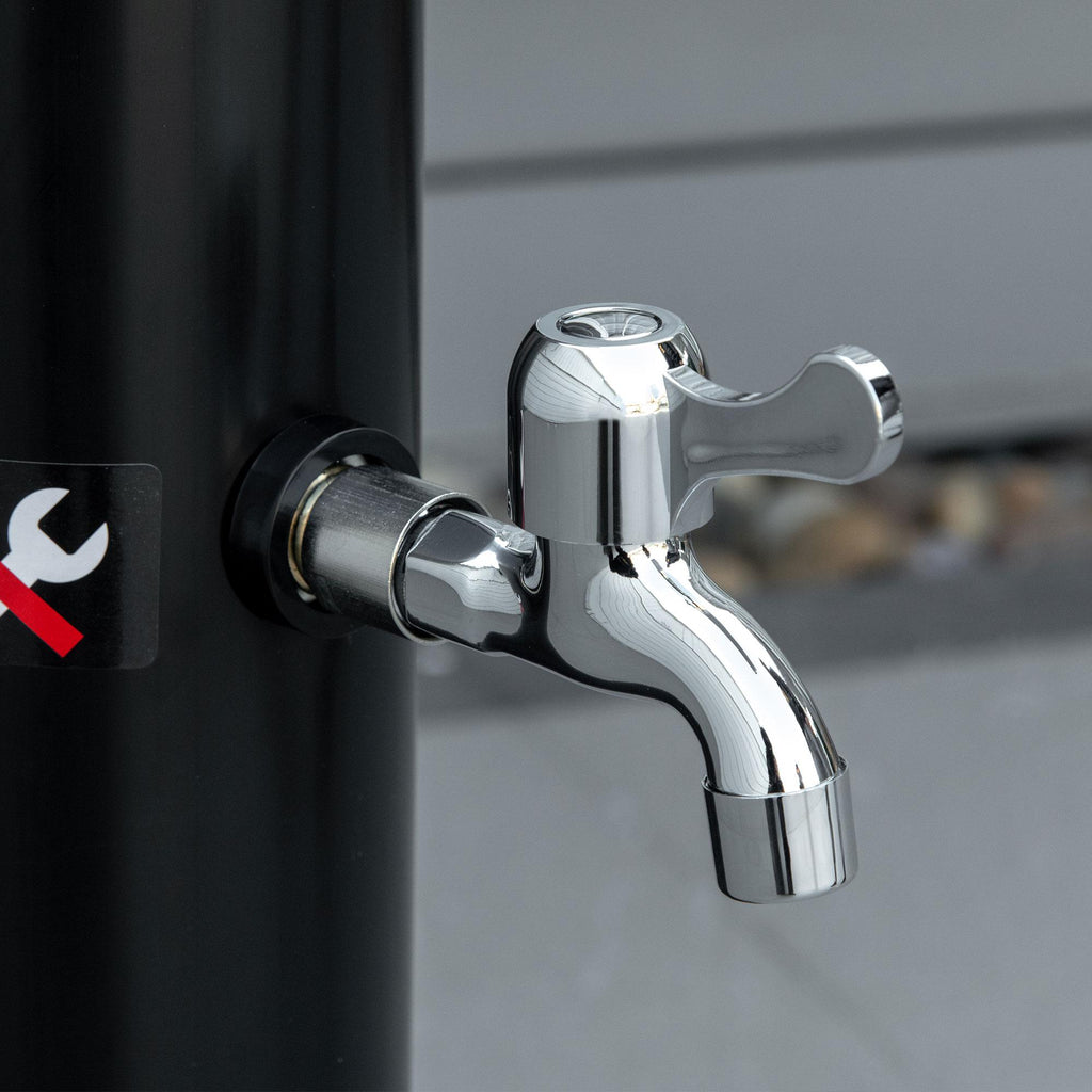 La doccia a energia solare di è progettata per gli ambienti esterni, è costruita con materiali di alta qualità ed è facile da assemblare. Basterà collegarla a un tubo da giardino standard e utilizzarla come doccia indipendente: ha un serbatoio da 20L e un miscelatore per regolare perfettamente la temperatura dell'acqua.