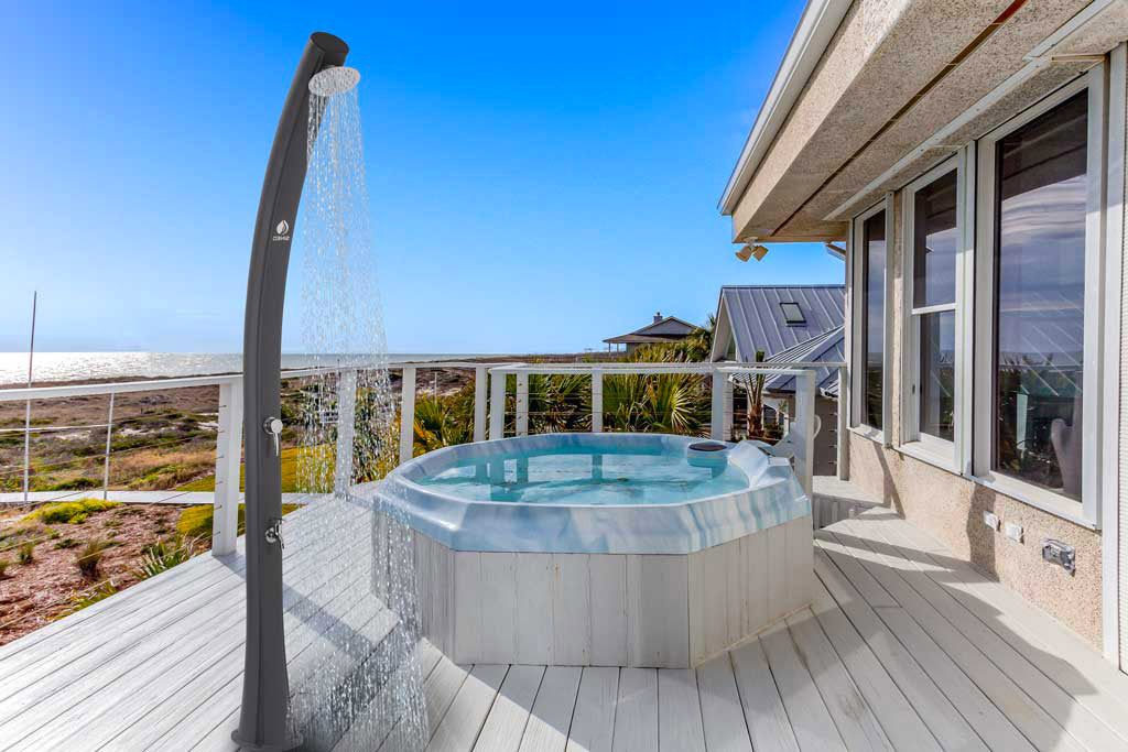 Il getto del soffione delle docce solari è molto più dolce del getto di una doccia tradizionale o del rubinetto, dal lavapiedi solo acqua fredda.