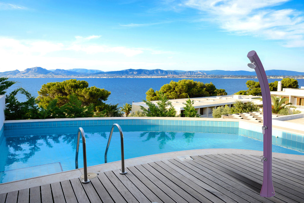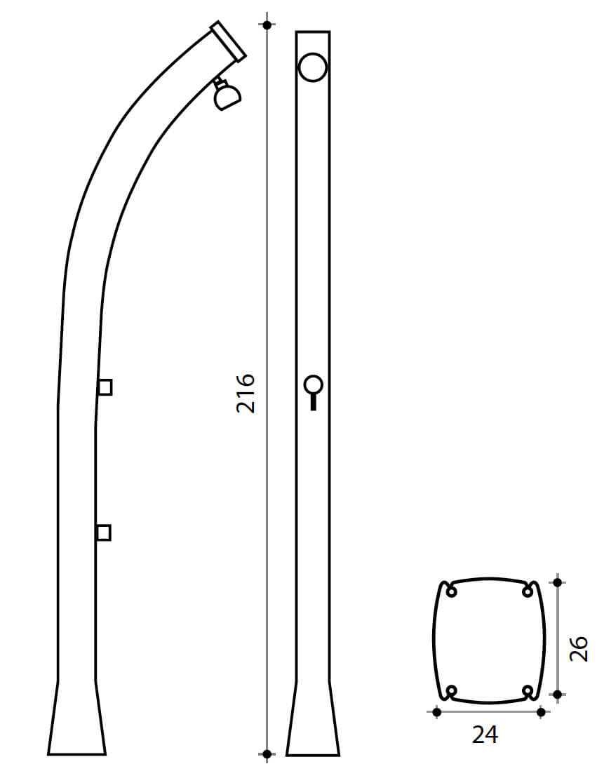 Grazie al suo design curvato si addice perfettamente a piscine, giardini e terrazzi. Per alimentare questa doccia solare basta un semplice collegamento a una presa d'acqua. La base convessa ne assicura la stabilità e la facile installazione.