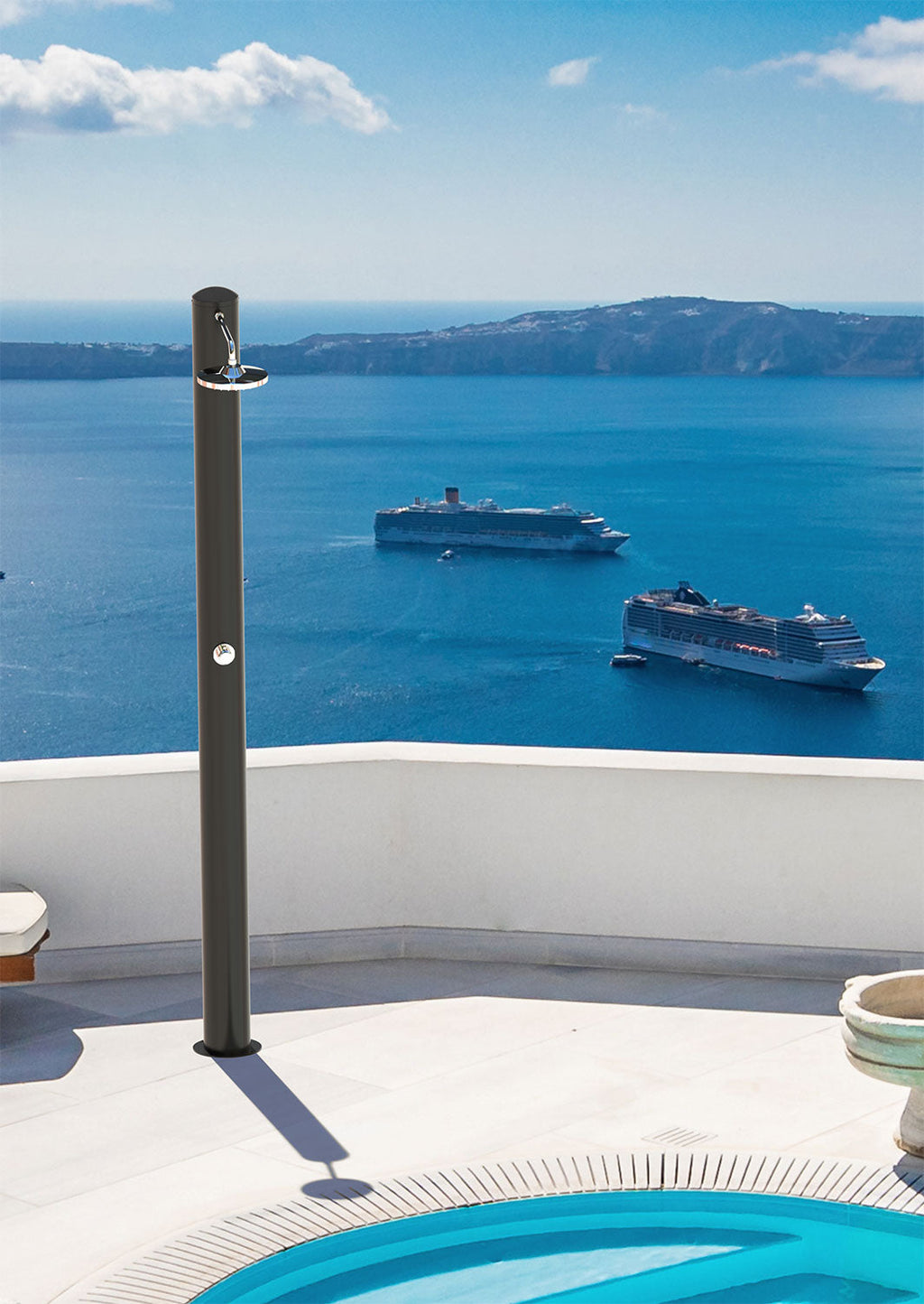 Doccia Solare da Giardino 28 L Soffione Eco Rain e Miscelatore Temporizzato Tevere TN Nero Opaco