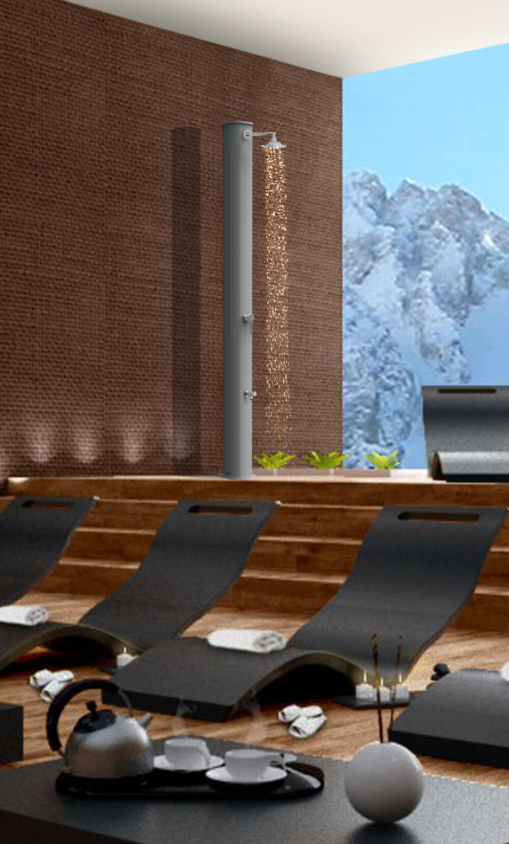 L'armonia e l'eleganza delle sue forme la rendono un complemento d'arredo adatto per qualsiasi ambientazione, sia solo per il giardino o se necessitate di una doccia per la vostra piscina. Ideale per strutture pubbliche e balneari.