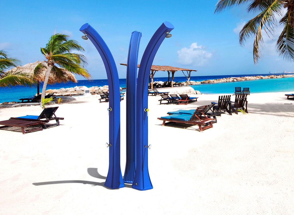 Questo tipo di doccia esterna contiene un serbatoio di 44 litri, in cui l'acqua viene riscaldata dalla luce solare diretta.