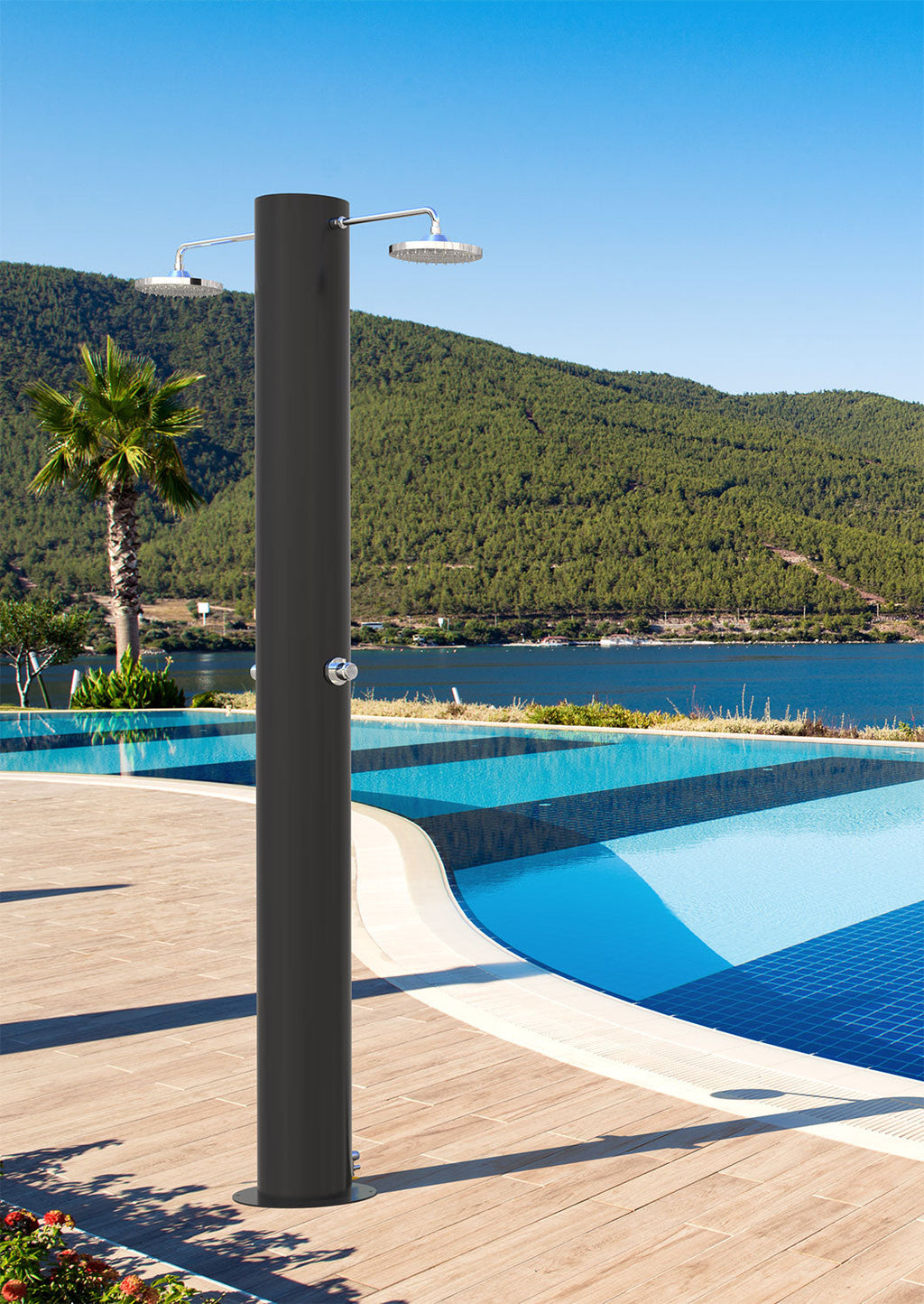 Doccia Solare da Giardino 70 L 2 Soffione Eco Rain e 2 Miscelatore Temporizzato Arno T2N Nero Opaco