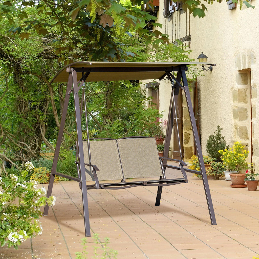 Dondolo 2 Posti da Giardino 147x125x170 cm in Metallo e Poliestere Marrone