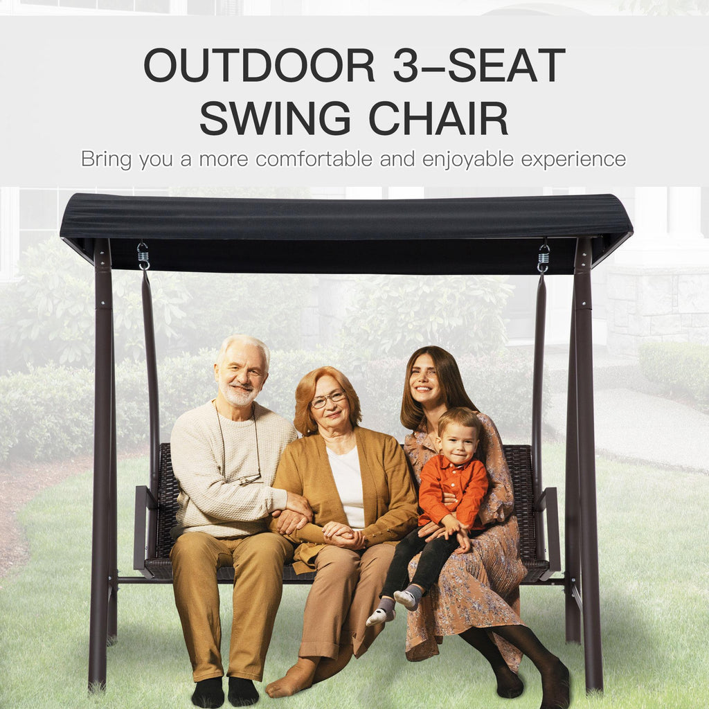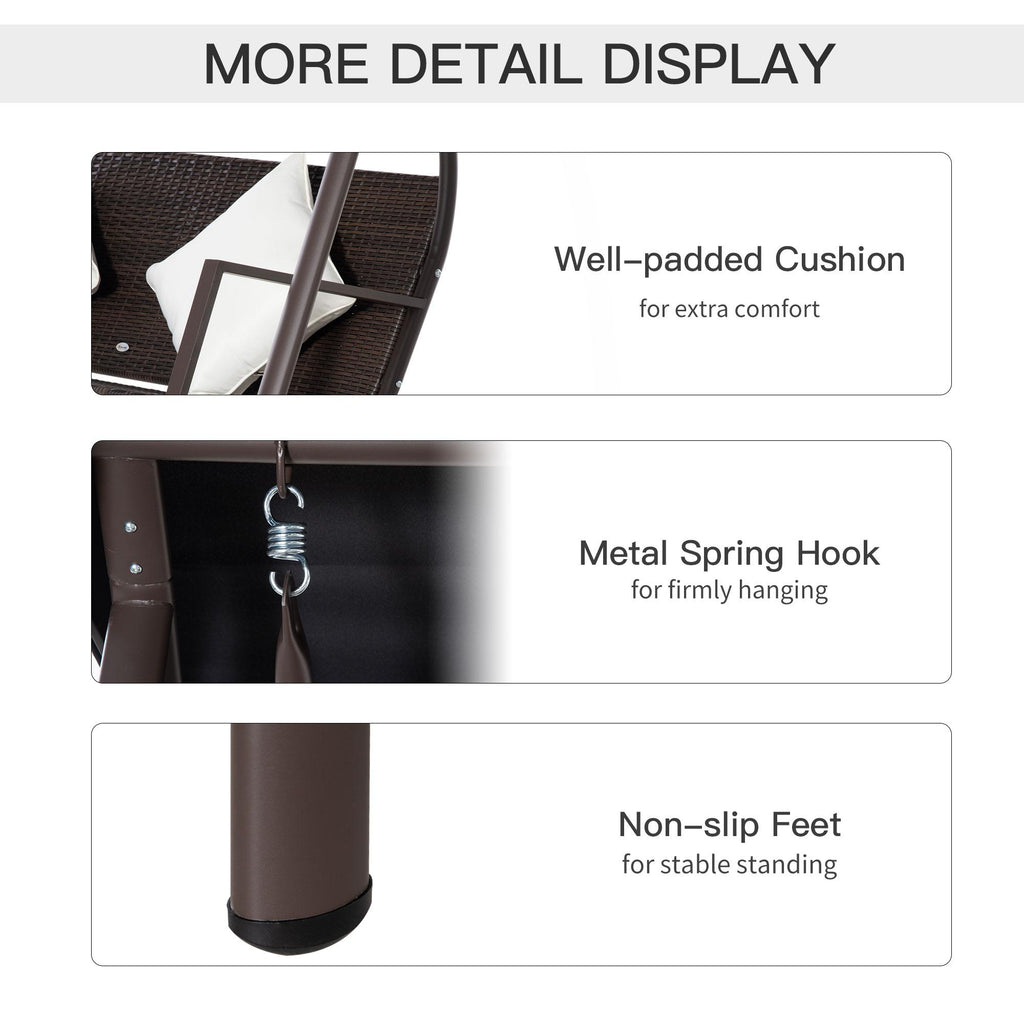 Questo dondolo da giardino ha un design moderno ed elegante che renderà unici i tuoi spazi all'aperto. La seduta in rattan PE di alta qualità è comoda, durevole e resistente all'uso in ambienti esterni. Il tettuccio assicura una protezione dal sole ottimale per dondolarsi comodamente a ogni ora. È arrivata l'ora di rilassarsi e lasciarsi cullare dal nostro dondolo 3 posti!