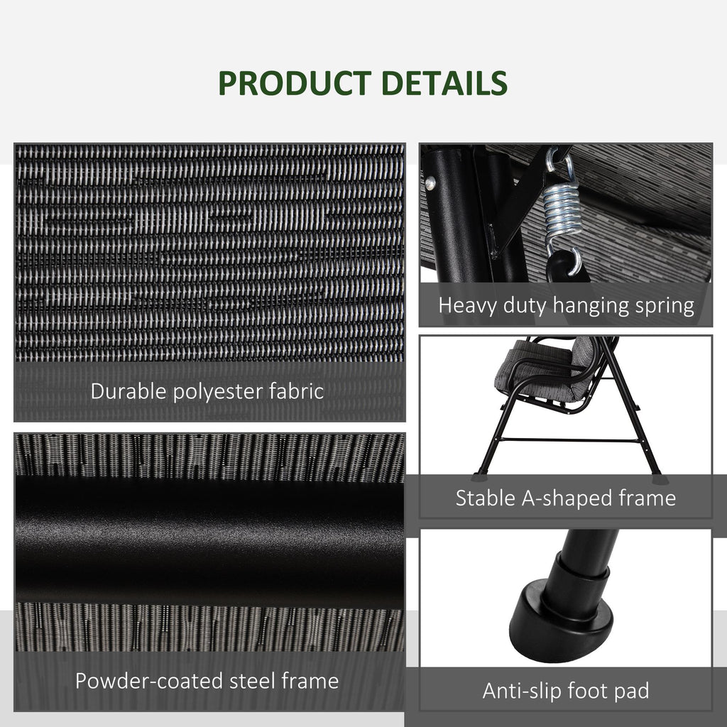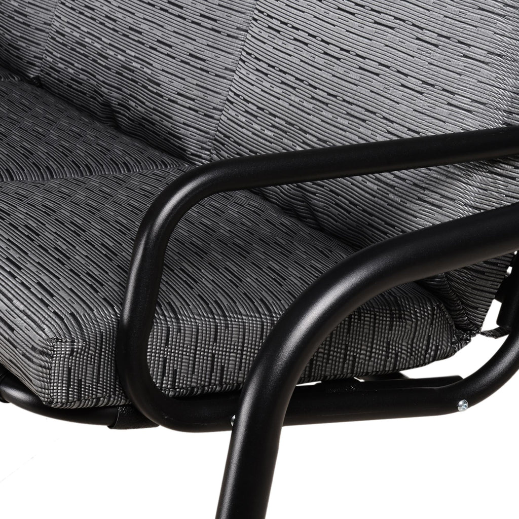 Dondolo 3 Posti 200x120x170 cm in Acciaio e Tessuto Nero