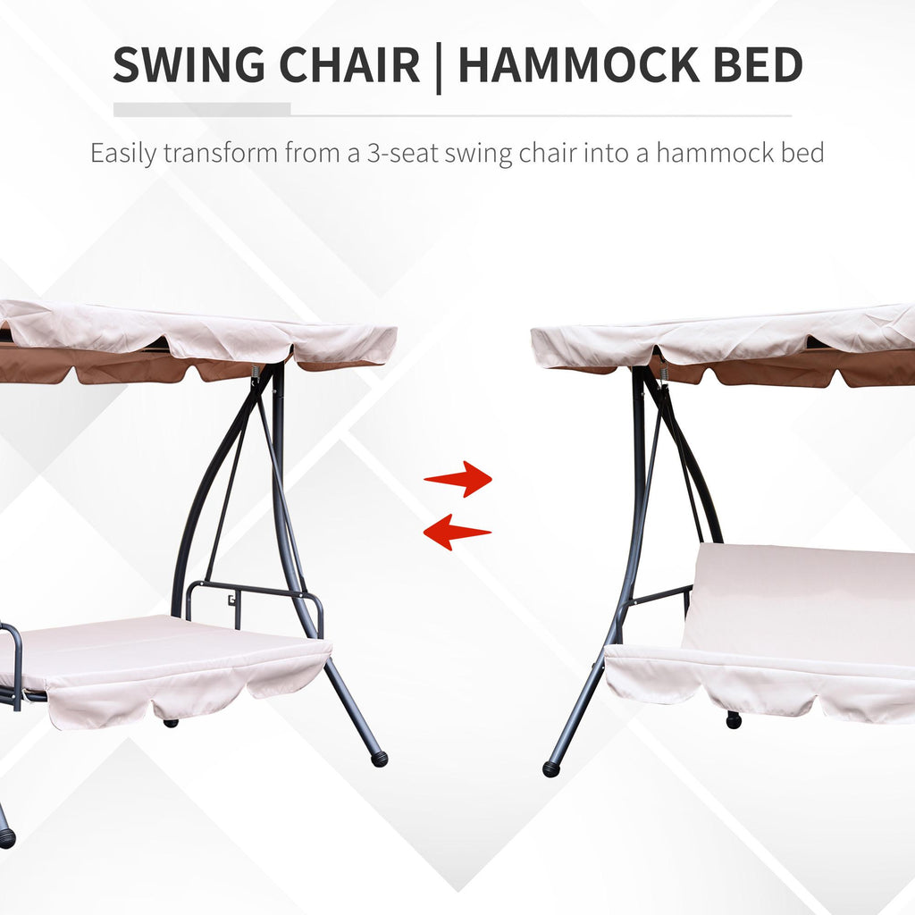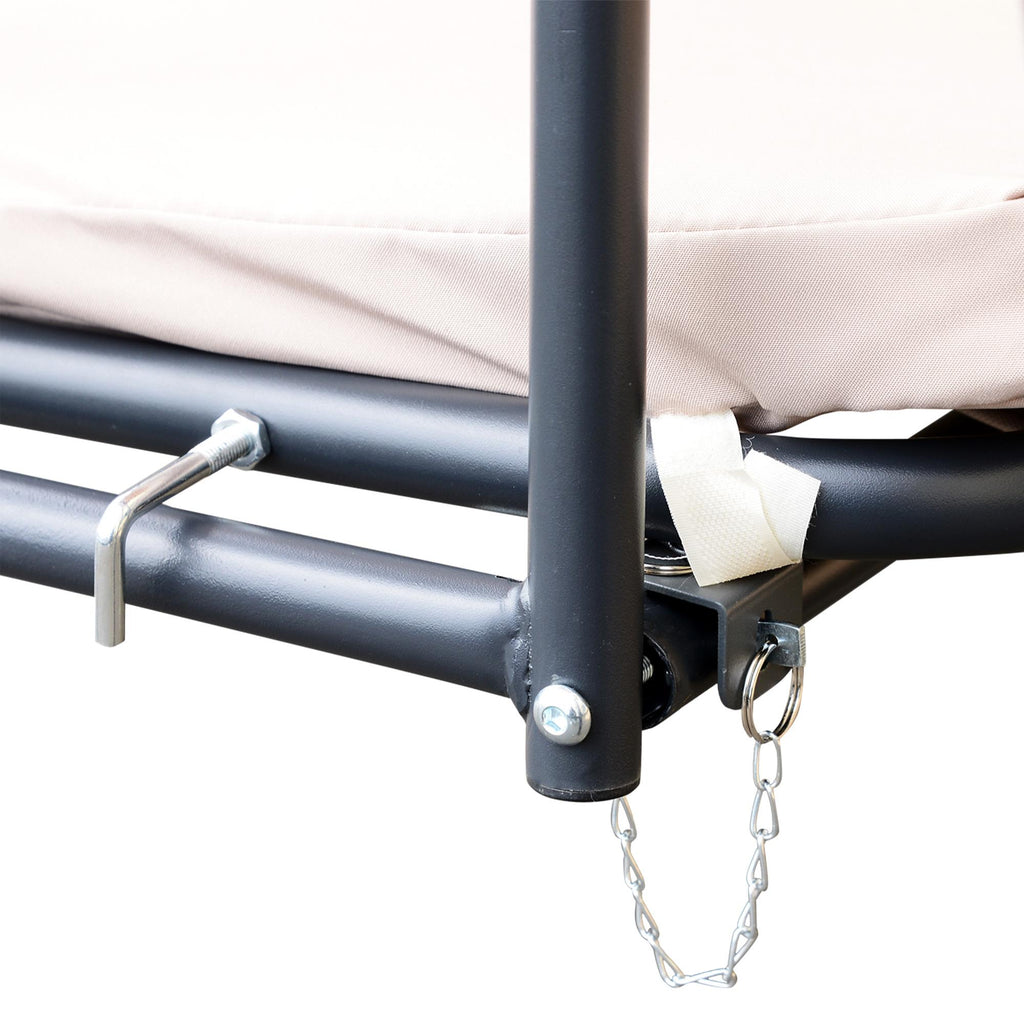 Dondolo 3 Posti 200x125x170 cm in Acciaio e Poliestere Beige