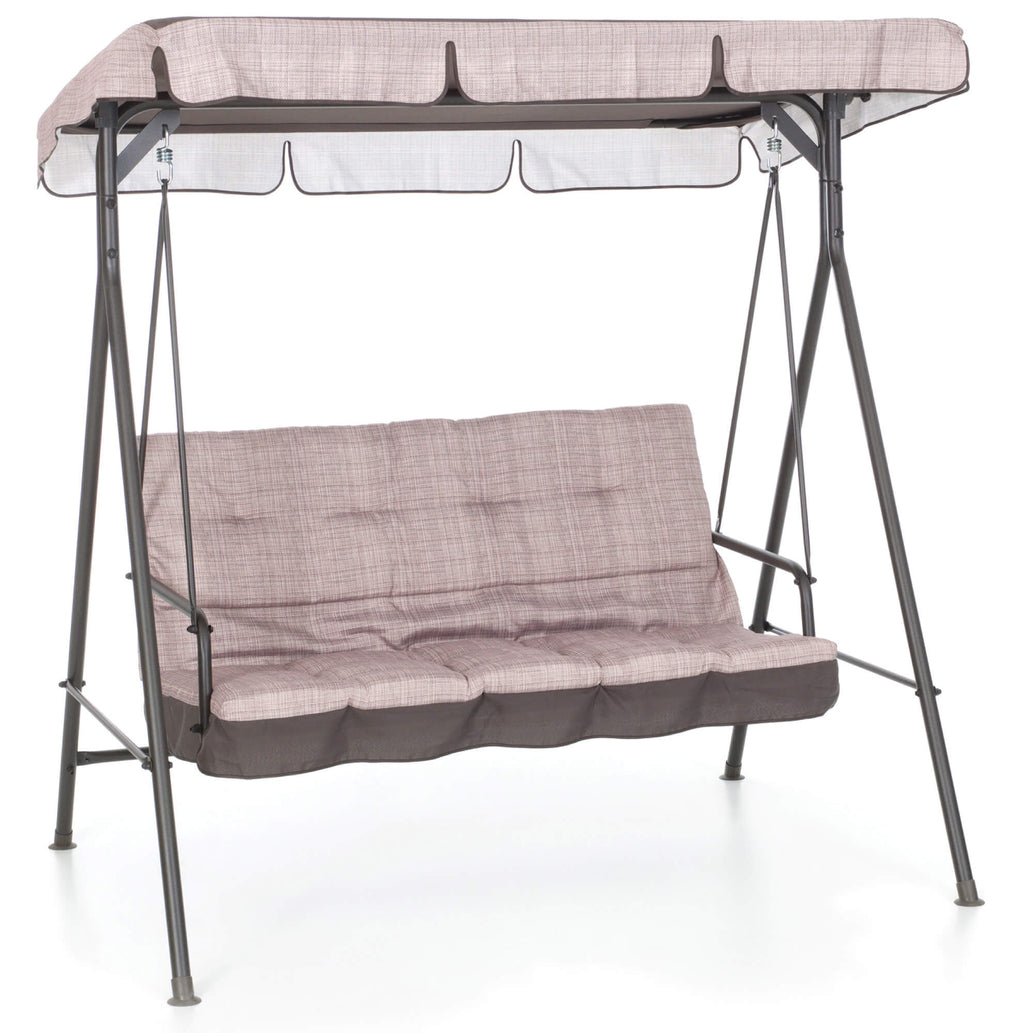 Dondolo 3 Posti da Giardino 160x118x160 cm in Ferro e Poliestere Pemba Beige