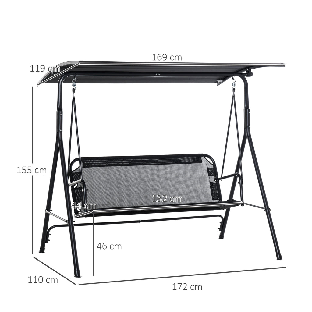 Dondolo 3 Posti da Giardino 172x110x155 cm in Metallo e Textilene Nero