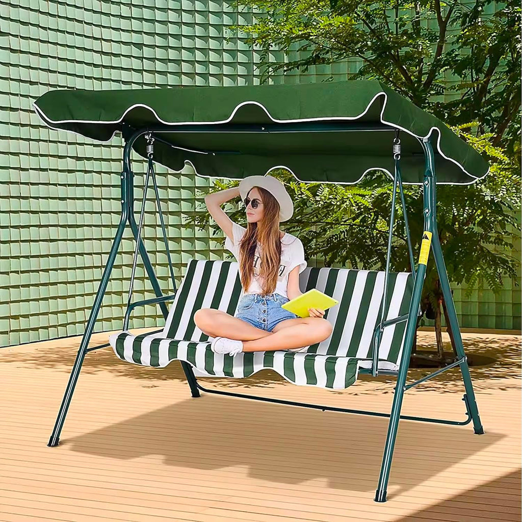Dondolo Swing 2+1 posti con struttura in acciaio, cuscini e tetto poliestere gr/mq 140 bianco/verde.