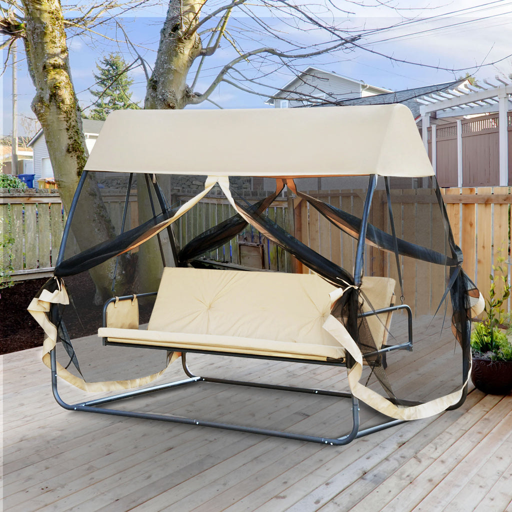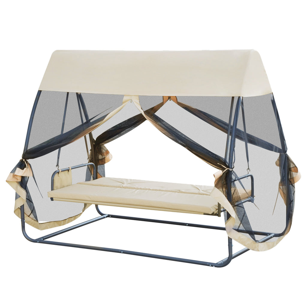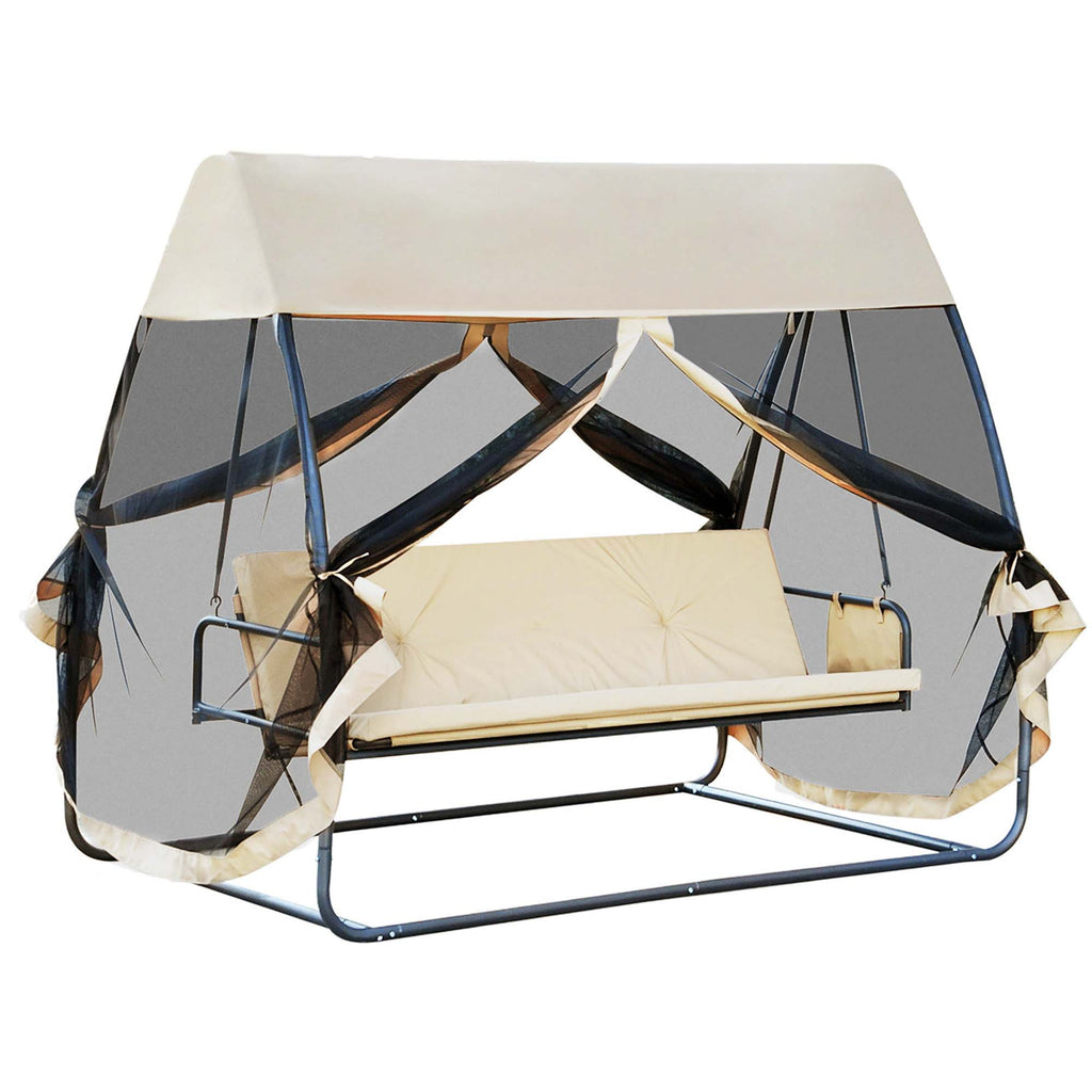 Dondolo 3 Posti da Giardino con Zanzariera Schienale Reclinabile per Funzione Letto Caffè? Chiaro