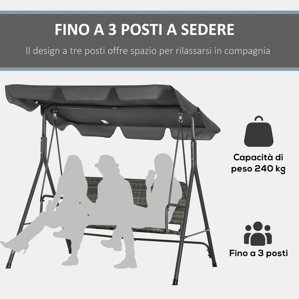 Dondolo da Giardino 3 Posti 167x112x153 cm con Tettuccio Regolabile in Rattan PE Grigio Scuro
