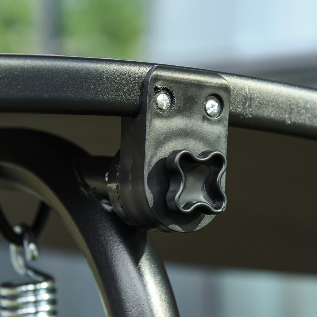 • TETTUCCIO REGOLABILE: Il tettuccio del dondolo 3 posti è realizzato in poliestere, un tessuto impermeabile in grado di filtrare i raggi UV. La sua angolazione può essere regolata per ripararti dal sole e goderti un po' di frescura all'ombra