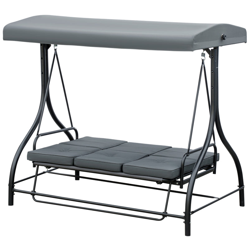 Dondolo da Giardino 3 Posti Convertibile in Lettino con Tettuccio Regolabile Grigio Scuro