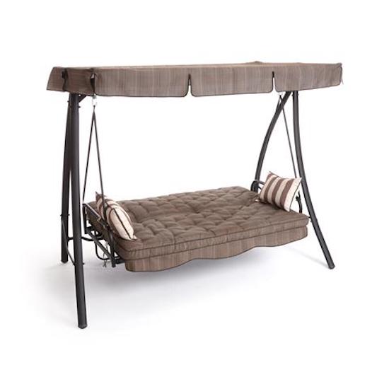 Dondolo da Giardino 3 Posti Reclinabile In Ferro e Poliestere Taddei Panama Marrone e Beige
