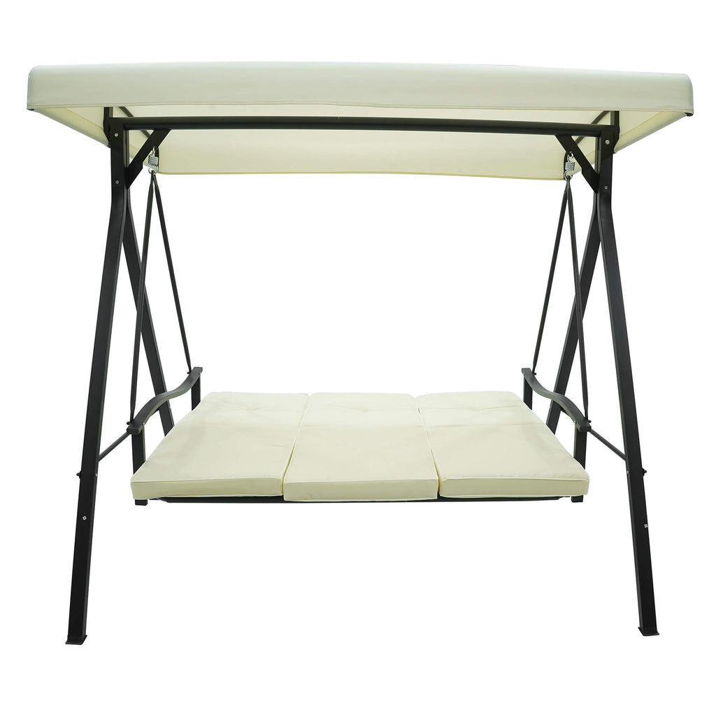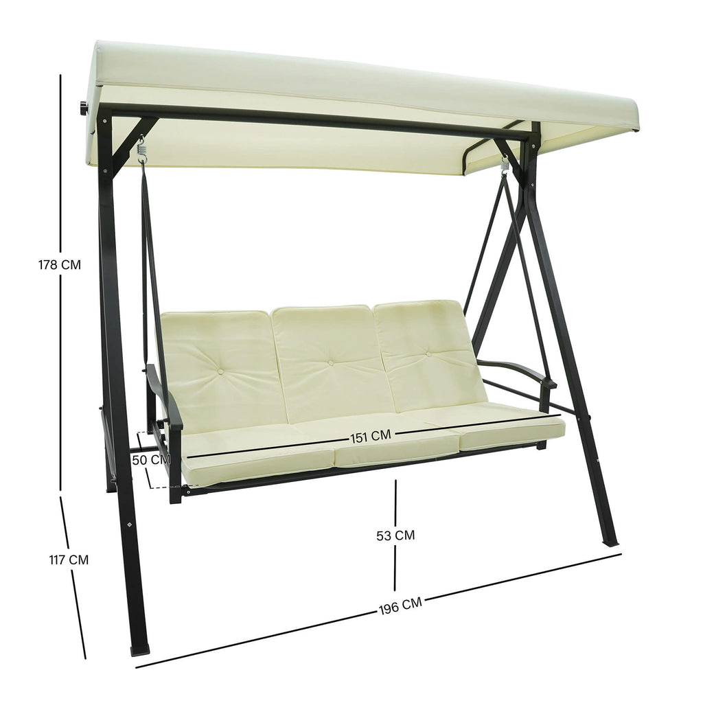 Dondolo Letto 3 Posti 192x134x180 cm in Acciaio e PVC Auriga Ecrù