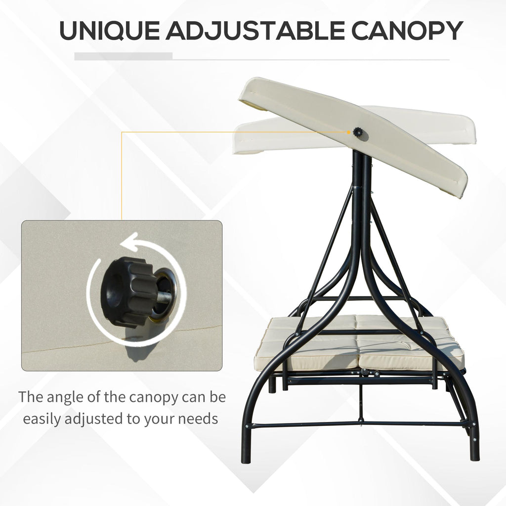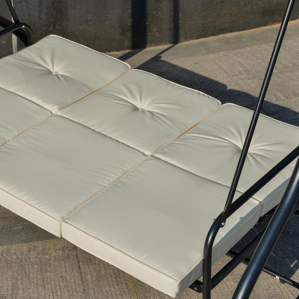 Dondolo Letto 3 Posti 195x117x174 cm in Metallo e Poliestere Nero e Beige