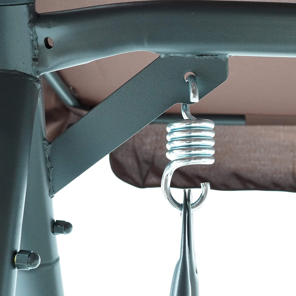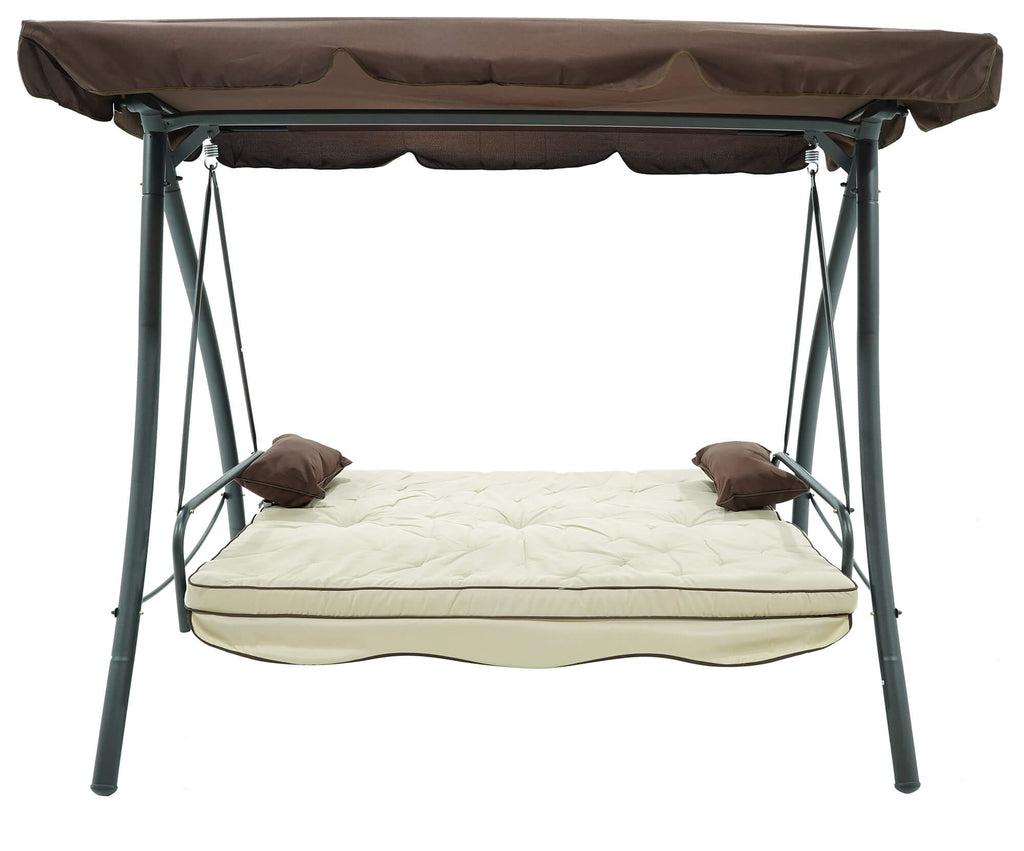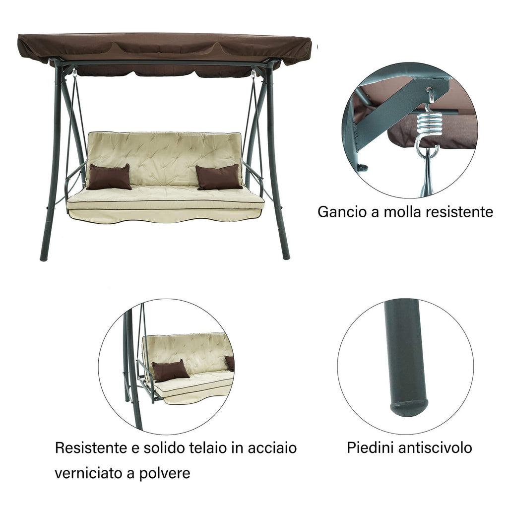 Dondolo Letto 3 Posti 202x115x170 cm in Acciaio e Poliestere Andromeda Marrone e Ecrù