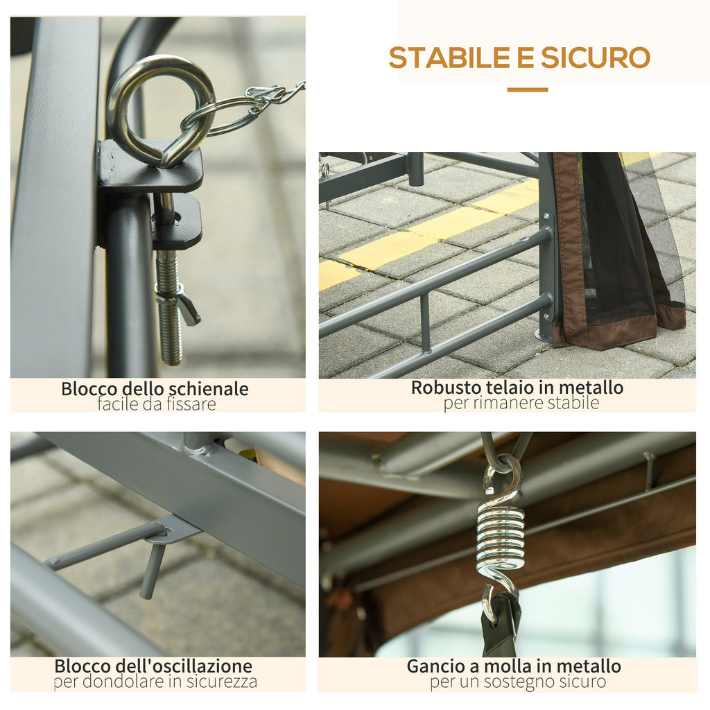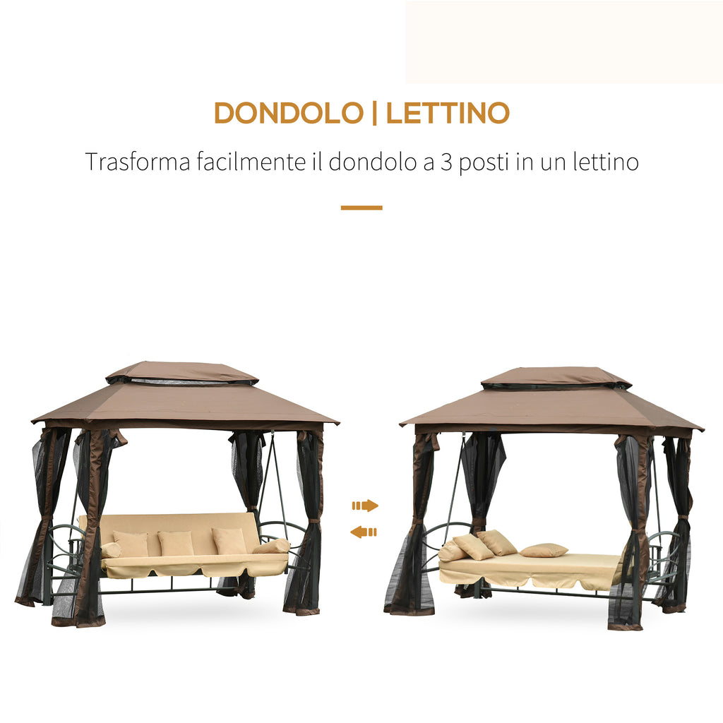 - DESIGN 3 IN 1: Non solo un dondolo da giardino ma anche un lettino e un gazebo. Questo dondolo 3 posti con copertura permette di rilassarsi e rimanere protetti dal sole. Ideale per ogni spazio esterno, dal giardino alla terrazza, dal bordo piscina al cortile.