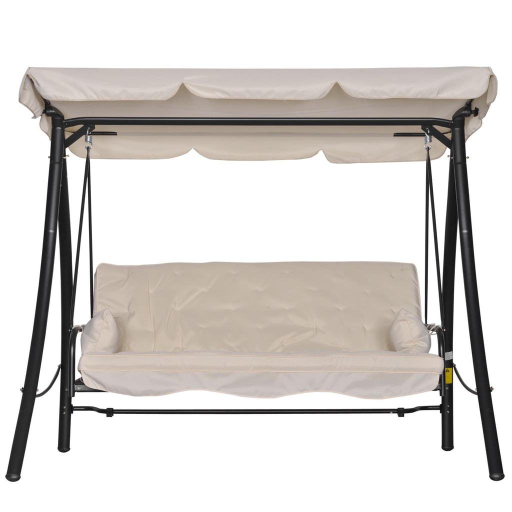 Dondolo Letto 3 Posti da Giardino 209x114x170 cm in Metallo e Poliestere Beige