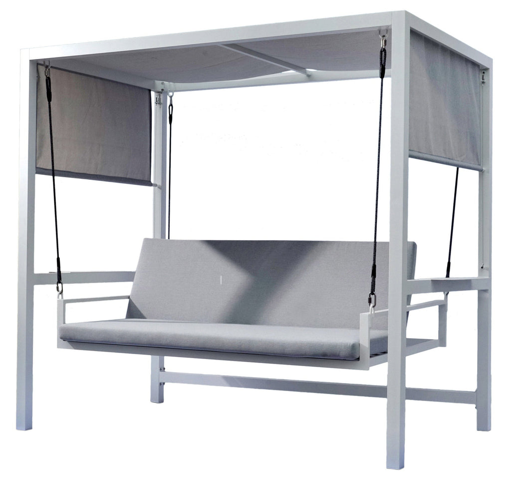 Dondolo Letto 3 Posti da Giardino 234x130x194 cm in Alluminio con Cuscini Grigio Chiaro