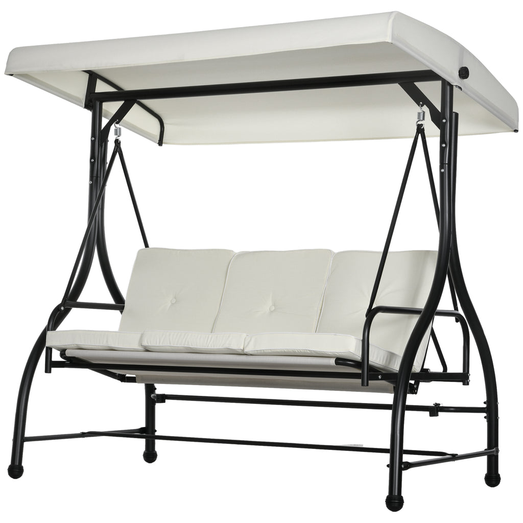 Dondolo Letto da Giardino 3 Posti con Tettuccio Regolabile 195x117x175 cm in Acciaio e Poliestere Crema e Nero