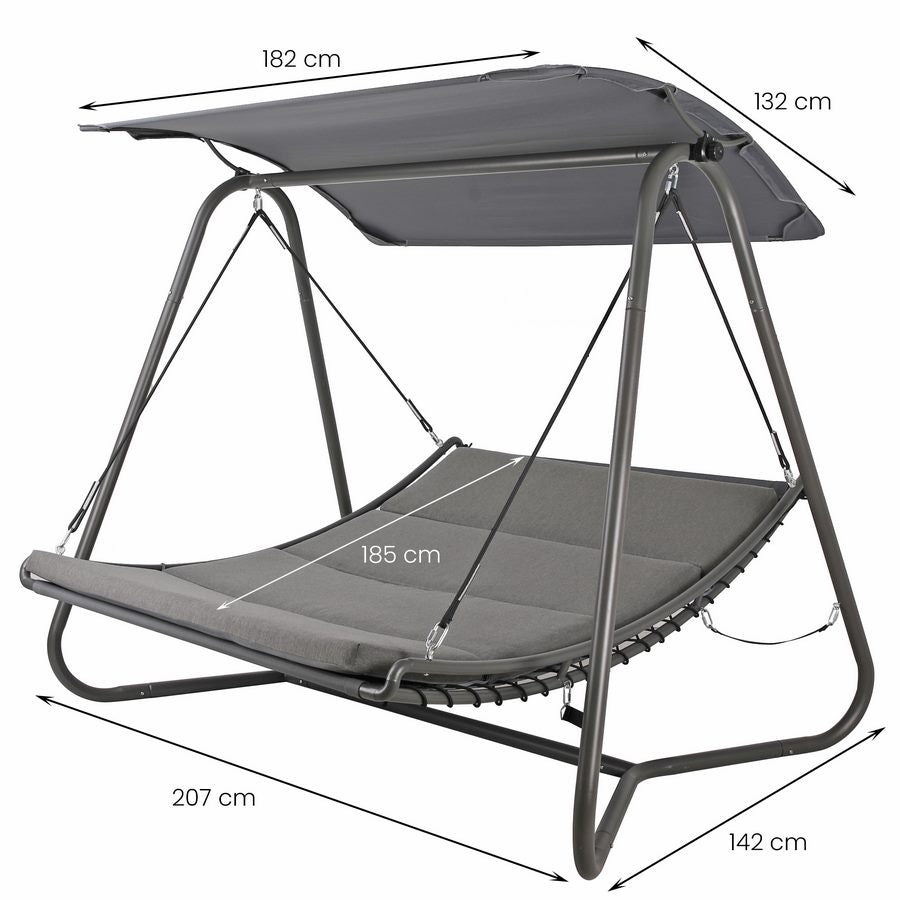 Dondolo Letto da Giardino imbottito 207x142xH172 cm con Tettuccio Regan grigio