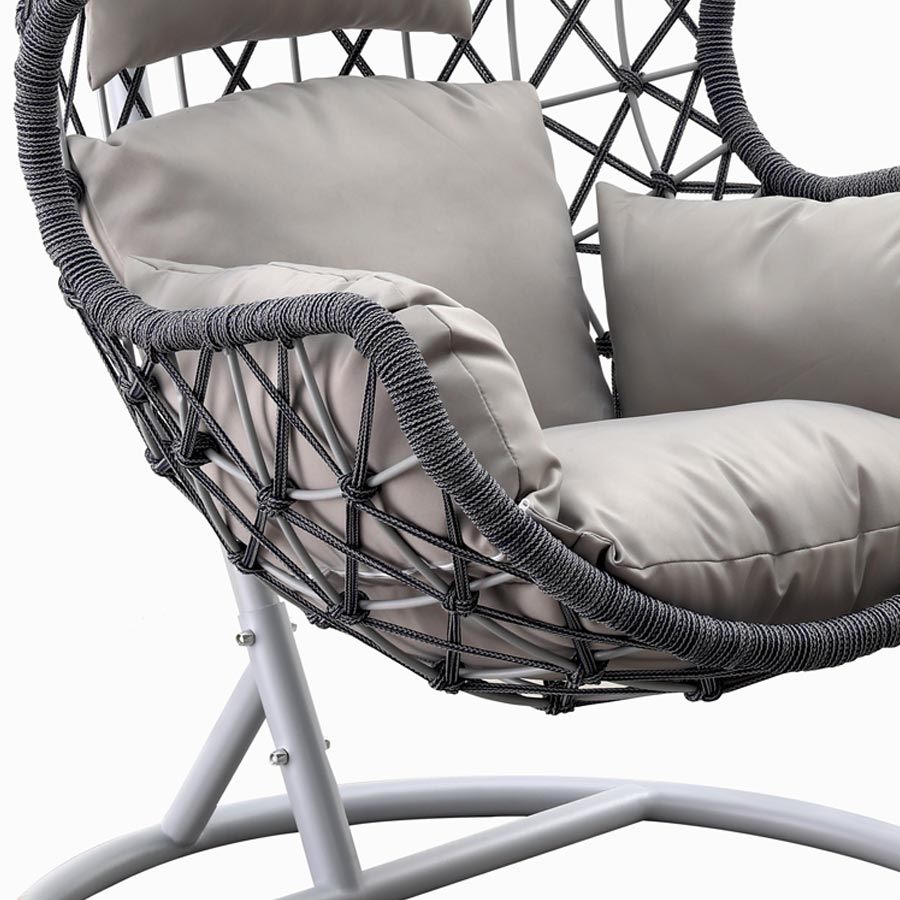 Lasciati cullare dalla nuova poltrona dondolo da giardino, con la sua forma a uovo e le sue linee ergonomiche, tutto a sostegno dei morbini e comodi cuscini compresi del prezzo. La poltrona è semplicissima da assemblare: la struttura in acciaio è resistente e lavorata perfettamente per resistere alla permanenza all'aperto nella bella stagione, anche se resta consigliabile una sua posizione al chiuso se non utilizzata per allungarne la resistenza ed evitare un'usura troppo accelerata dalle intemperie invernali.