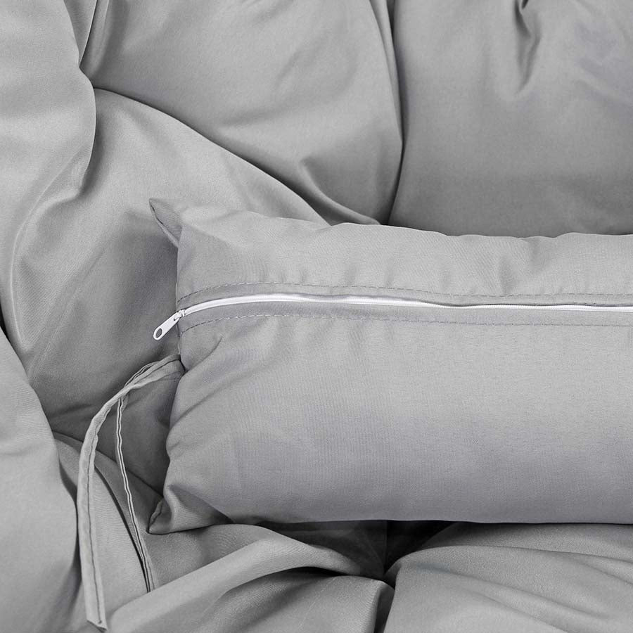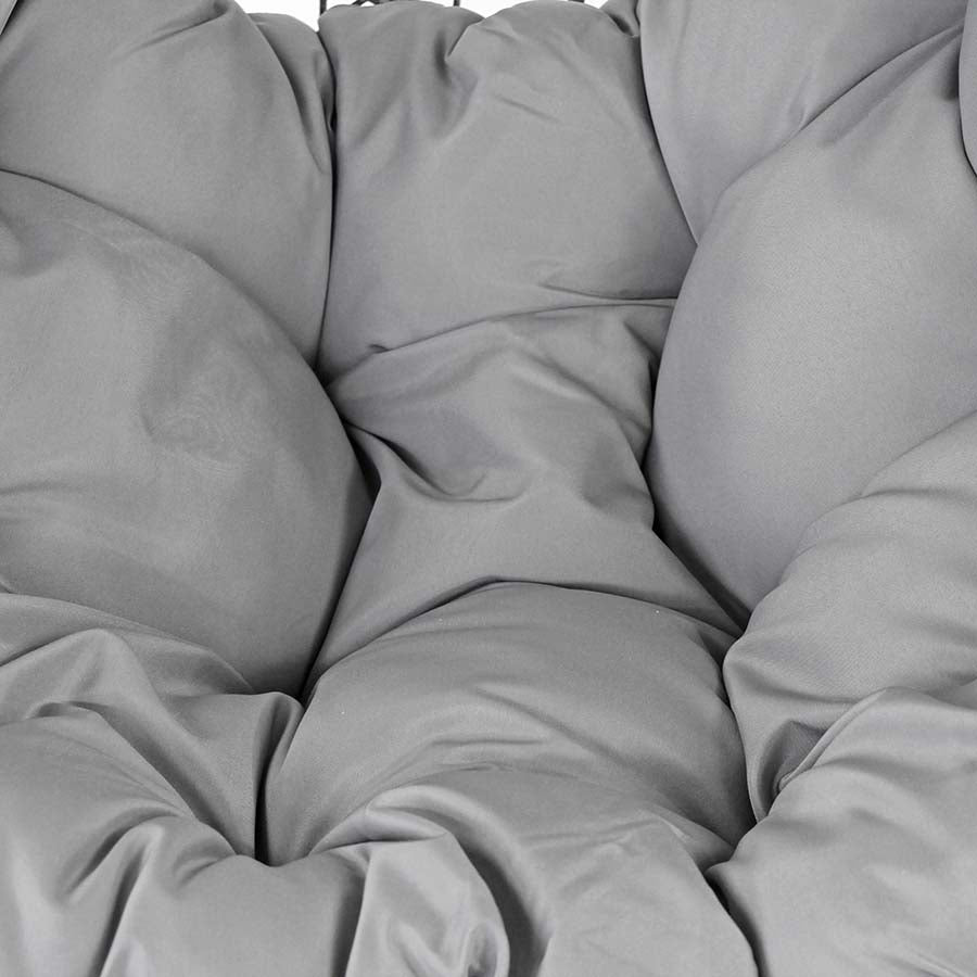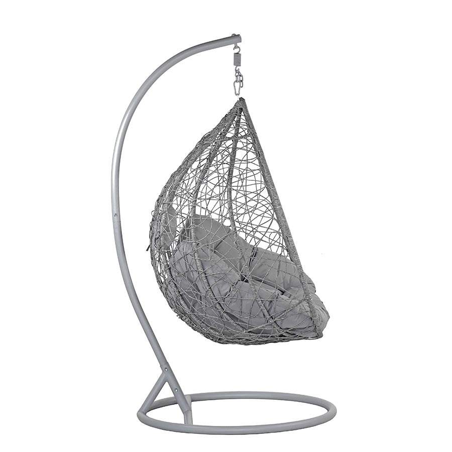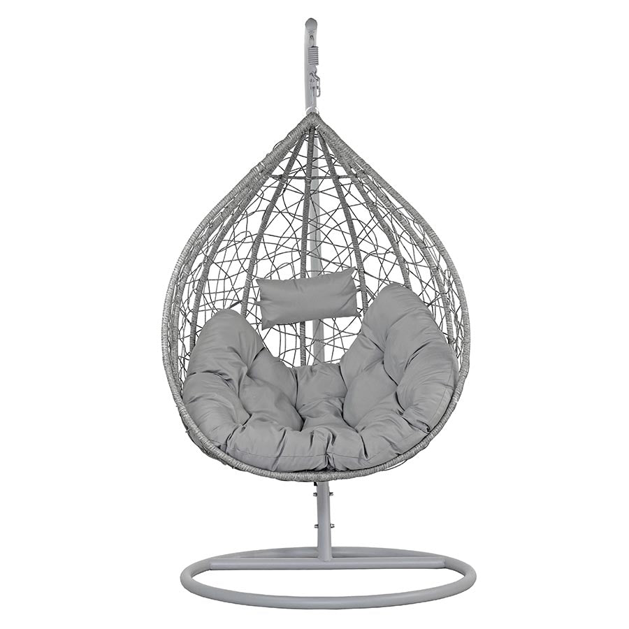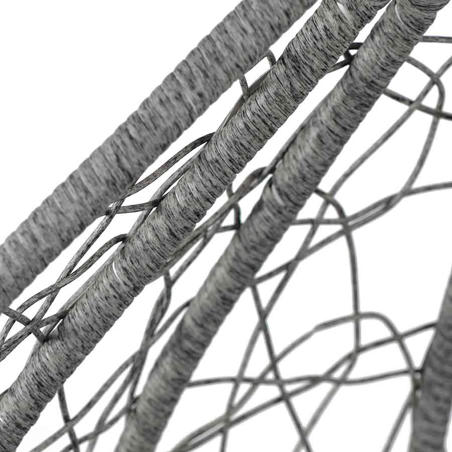 La poltrona sospesa da giardino, in versione grigio, è un elemento che, da solo, può regalare eleganza, comfort e impatto al tuo arredo giardino. Dotata di struttura in ferro, la poltrona uovo sospesa ha una base in ferro da 108 cm e una struttura alta 198 cm su cui viene appesa la poltrona da esterno con corpo in fibra sintetica e set di cuscini abbinati in poliestere che regalano morbidezza e grande comodità. La poltrona ovetto sospesa mette, quindi, insieme un elegante impatto visivo, con un comfort totale, aumentato anche dall'effetto cullante che una poltrona a dondolo sospesa può avere. La poltrona sospesa da giardino, tuttavia, si adatta perfettamente a praticamente ogni tipo di spazio outdoor e si integra bene con molti stili di arredamento giardino eventualmente già presenti nella stessa location.