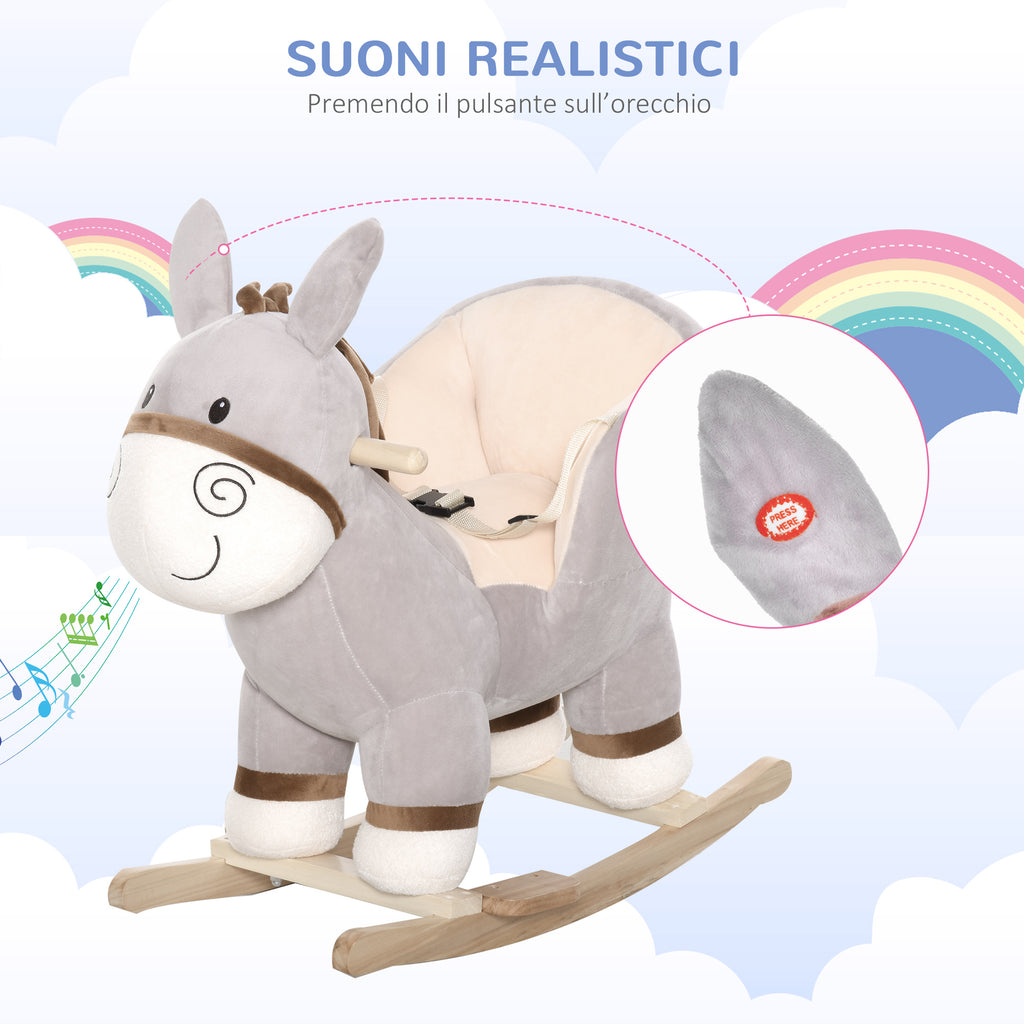 Dondolo per Bambini in Legno Asino in Peluche con Suono