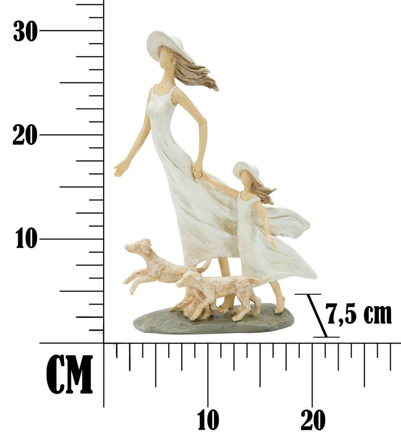 Statuetta di donna con bambina e cani in resina. Ideale come regalo originale e personalizzato.