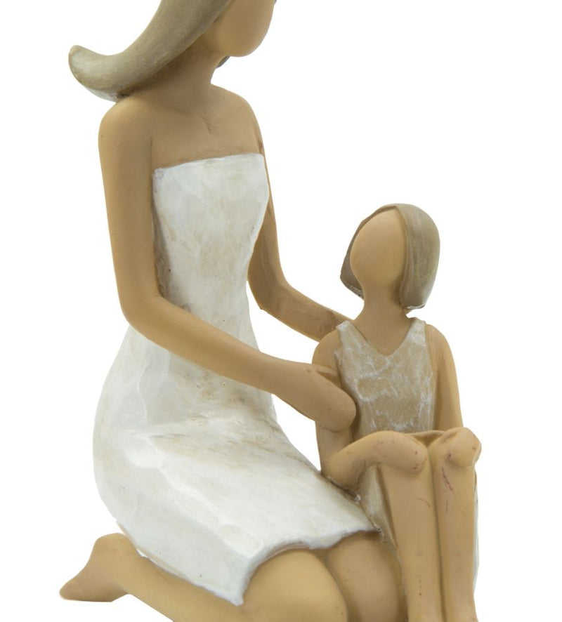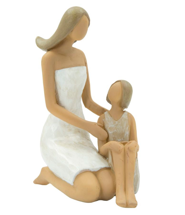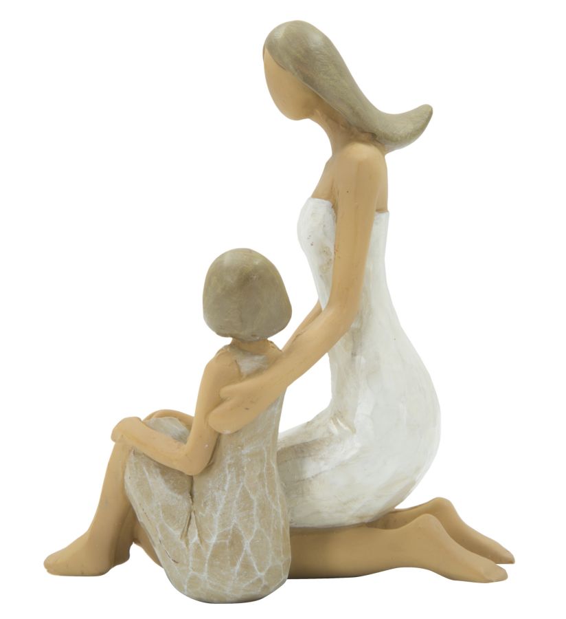 Statuetta di donna seduta con bambina in resina. Ideale come regalo originale e personalizzato.