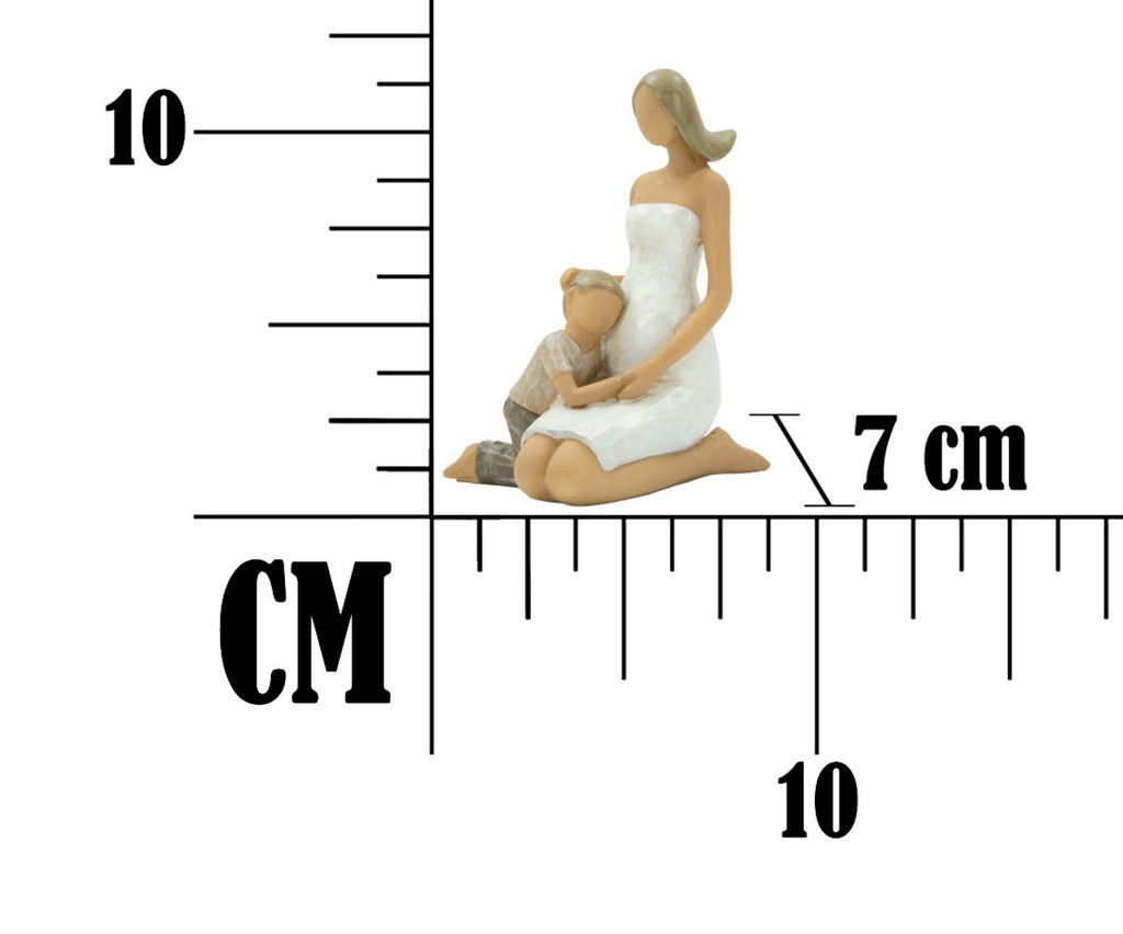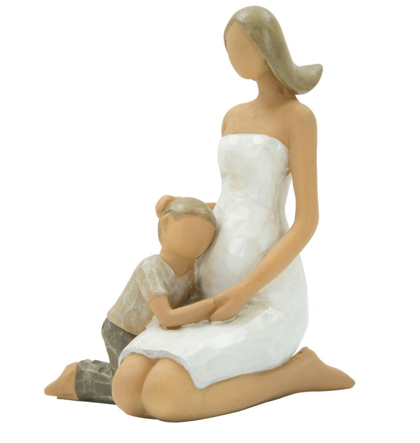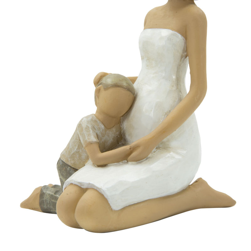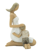 Statuetta di donna seduta con bambino in resina. Ideale come regalo originale e personalizzato.